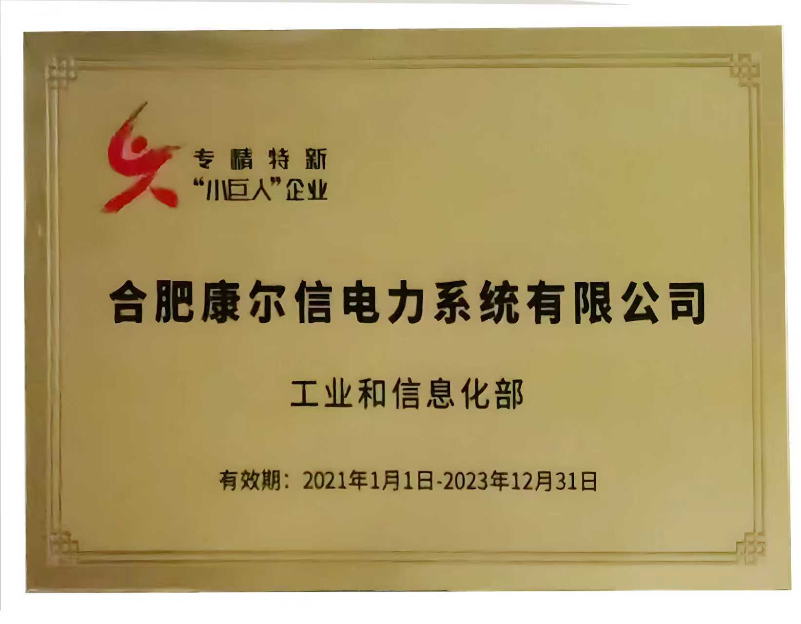 • 荣获“安徽省专精特新中小企业”称号